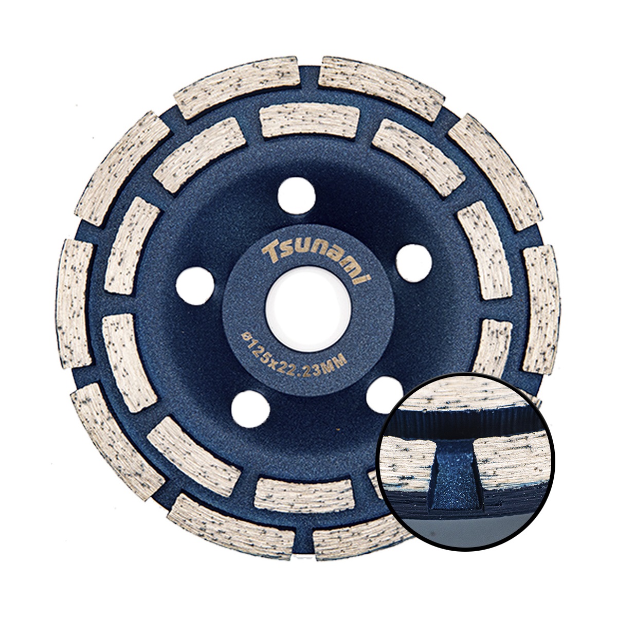Чашка алмазная двухрядная предназначена для шлифования поверхностей из камня, бетона, мрамора, гранита без применения водяного охлаждения.