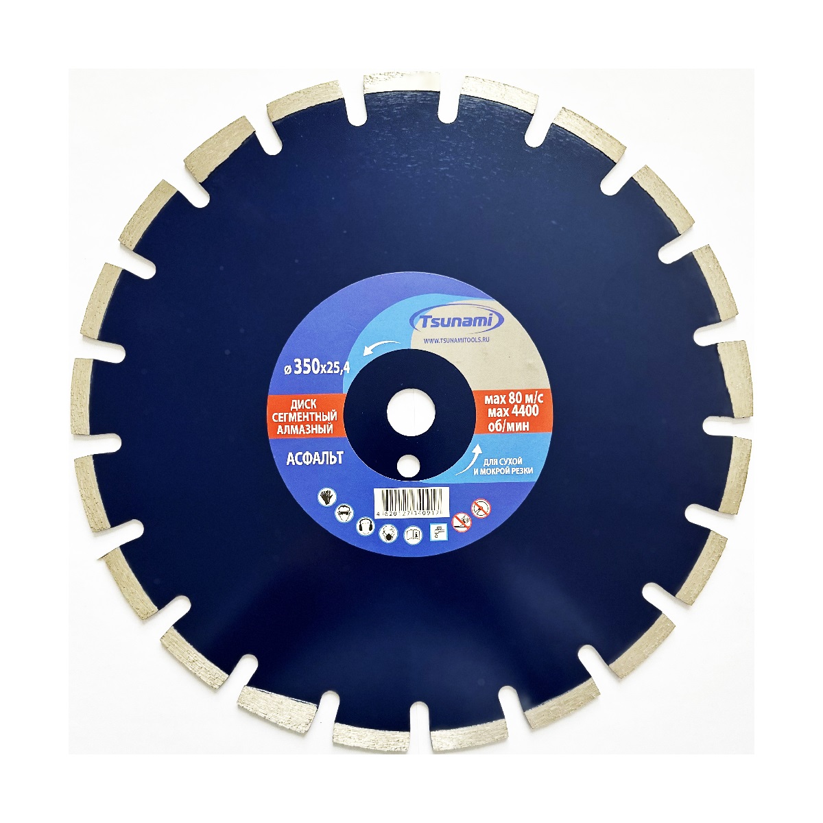 •    Профессиональный алмазный диск по асфальту TSUNAMI - предназначен для сухой и мокрой резки асфальта, асфальтобетона и других твердых аналогичных материалов.