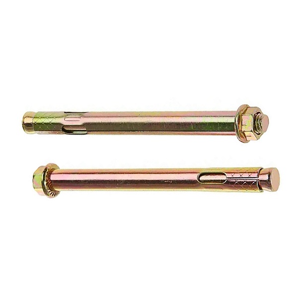 Анкерный болт с гайкой представляет собой сложное крепежное изделие, изготовленное из составных частей: шпильки с распором, внешней оболочки и гайки с запрессованной шайбой. Отличительная особенность конструкции в том, что при монтаже анкера с гайкой, шпилька начинает выступать за края анкера, увеличивая его общую длину.