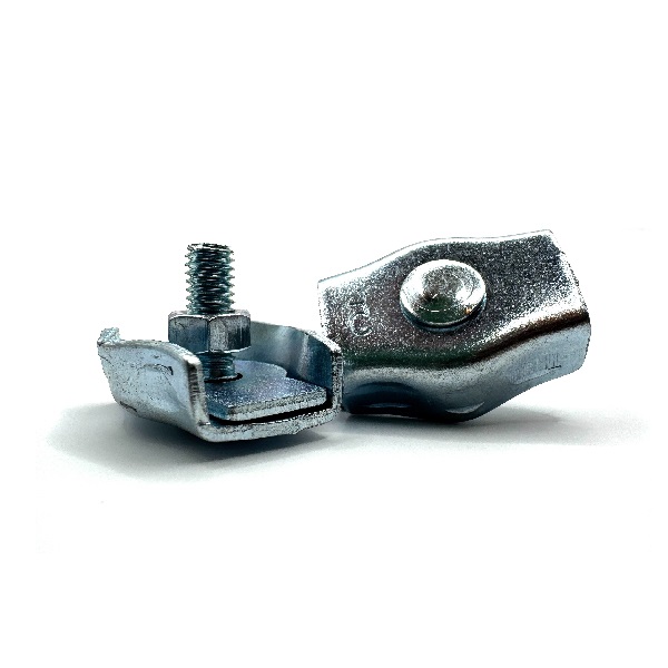 Соединитель тросовый (канатный) SIMPLEX. Применяется для сращивания тросов между собой, а также для изготовления петель на концах троса. Независимо от типа, рекомендуется устанавливать не менее двух зажимов. Размерные параметры определяются исходя из диаметра зажимаемого троса. Изготовлен из углеродистой оцинкованной стали.